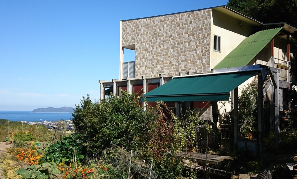 住宅のベランダや店舗の軒先にオーニングテントの規格フレームを取付、アーム部品を動かすことでテント生地部分を開閉します。